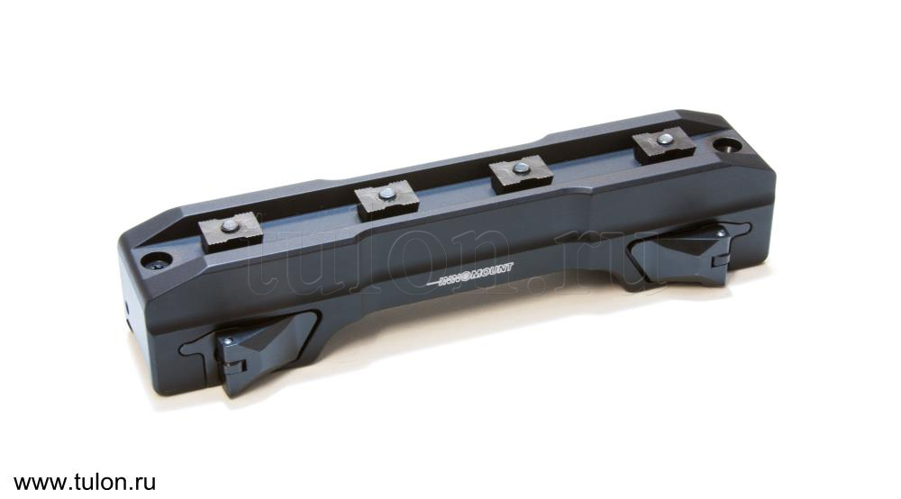 Все очень просто — прислонить ответную часть кронштейна к основе и закрыть зажимной рычаг. Флажок рычага в сложенном положении не возможно открыть случайно. Нажав кнопку с противоположной стороны кронштейна, освобождается флажок запорного механизма, только после этого замок можно открыть и снять кронштейн. Прицельное устройство можно установить или заменить в течении считанных секунд.