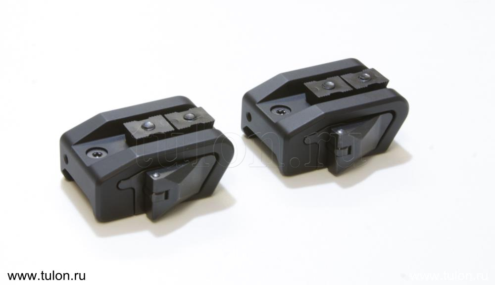 Все очень просто — прислонить ответную часть кронштейна к основе и закрыть зажимной рычаг. Флажок рычага в сложенном положении не возможно открыть случайно. Нажав кнопку с противоположной стороны кронштейна, освобождается флажок запорного механизма, только после этого замок можно открыть и снять кронштейн. Прицельное устройство можно установить или заменить в течении считанных секунд.