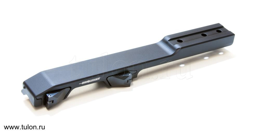Все очень просто — прислонить ответную часть кронштейна к основе и закрыть зажимной рычаг. Флажок рычага в сложенном положении не возможно открыть случайно. Нажав кнопку с противоположной стороны кронштейна, освобождается флажок запорного механизма, только после этого замок можно открыть и снять кронштейн. Прицельное устройство можно установить или заменить в течении считанных секунд.