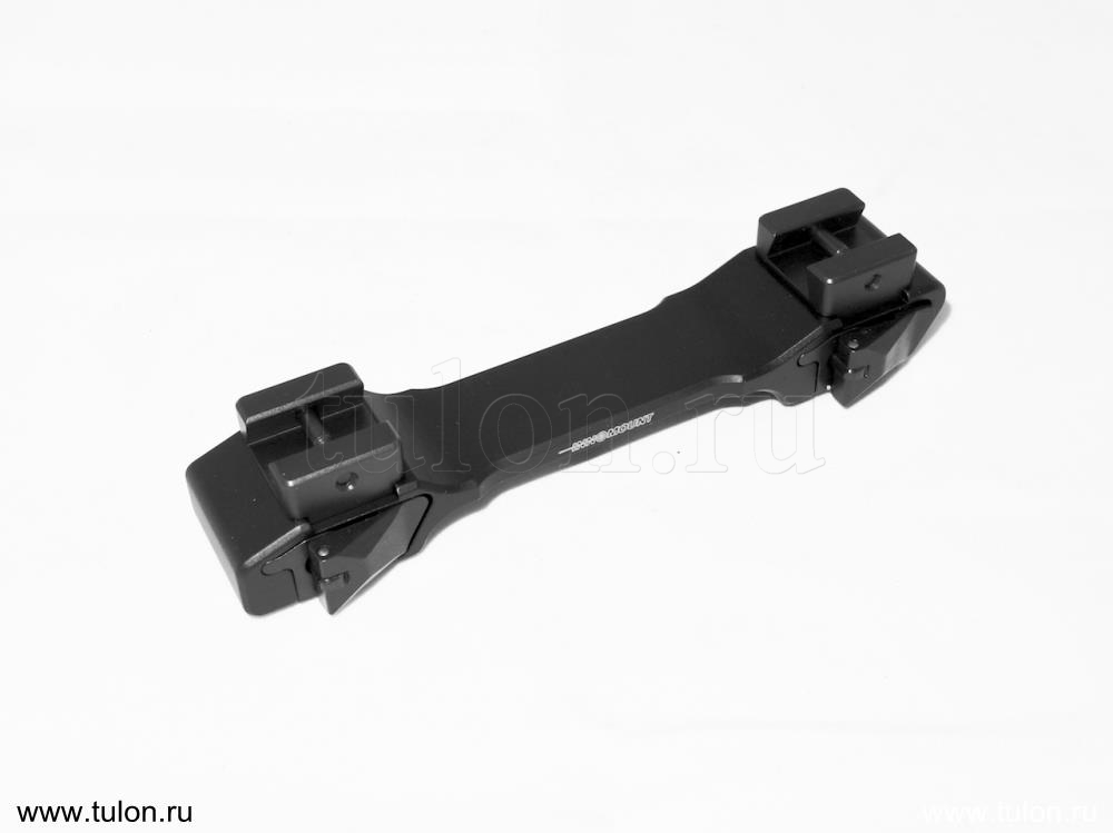 Все очень просто — прислонить ответную часть кронштейна к основе и закрыть зажимной рычаг. Флажок рычага в сложенном положении не возможно открыть случайно. Нажав кнопку с противоположной стороны кронштейна, освобождается флажок запорного механизма, только после этого замок можно открыть и снять кронштейн. Прицельное устройство можно установить или заменить в течении считанных секунд.