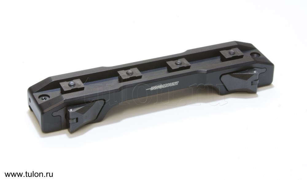 Все очень просто — прислонить ответную часть кронштейна к основе и закрыть зажимной рычаг. Флажок рычага в сложенном положении не возможно открыть случайно. Нажав кнопку с противоположной стороны кронштейна, освобождается флажок запорного механизма, только после этого замок можно открыть и снять кронштейн. Прицельное устройство можно установить или заменить в течении считанных секунд.