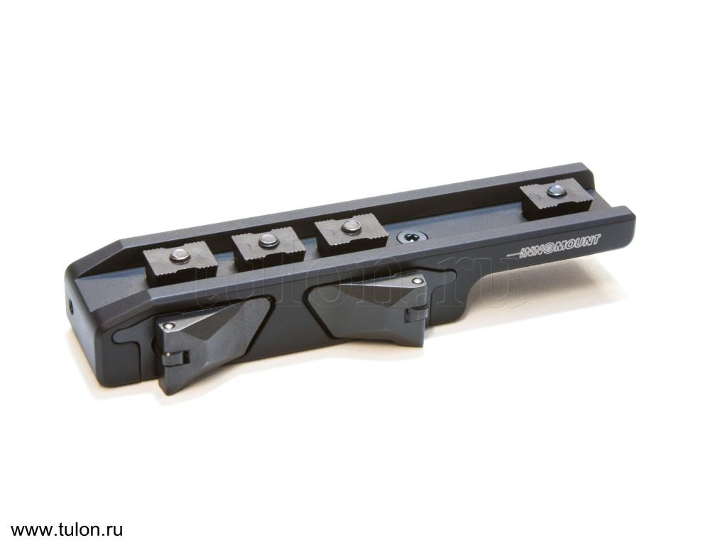 Все очень просто — прислонить ответную часть кронштейна к основе и закрыть зажимной рычаг. Флажок рычага в сложенном положении не возможно открыть случайно. Нажав кнопку с противоположной стороны кронштейна, освобождается флажок запорного механизма, только после этого замок можно открыть и снять кронштейн. Прицельное устройство можно установить или заменить в течении считанных секунд.
