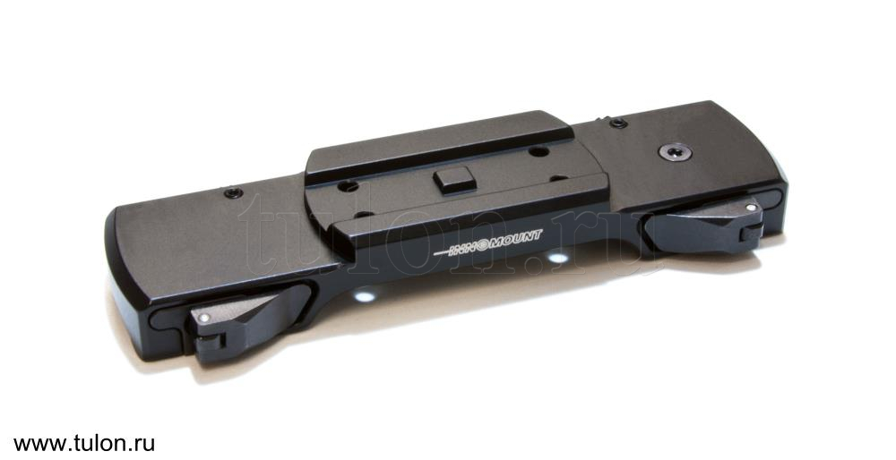 Все очень просто — прислонить ответную часть кронштейна к основе и закрыть зажимной рычаг. Флажок рычага в сложенном положении не возможно открыть случайно. Нажав кнопку с противоположной стороны кронштейна, освобождается флажок запорного механизма, только после этого замок можно открыть и снять кронштейн. Прицельное устройство можно установить или заменить в течении считанных секунд.