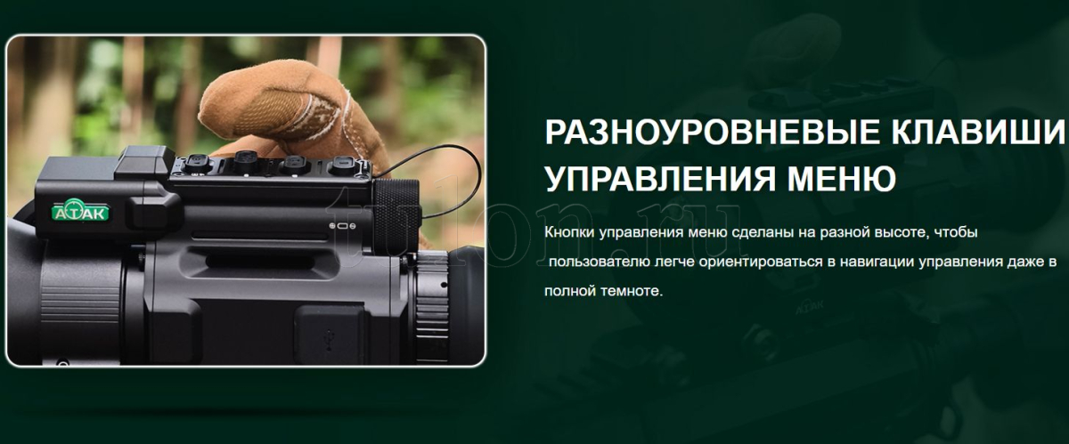 дальномера и удобного нажатия в темноте в перчатках. Доступ к настройкам