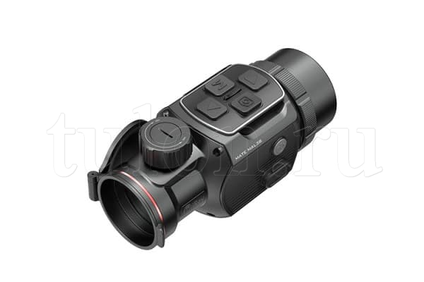 Тепловизионная насадка iRay Mate MAL38 - поставляется с пультом дистанционного управления, дополнительным лазерным дальномером, а также аккумулятором, имеет разрешение детектора 384x288 пикселей, OLED-экран, объектив 38 мм, Wi-Fi, видеомагнитофон с 32 ГБ памяти, дальность действия 1948 м и сопротивление отдаче до 8000 джоулей для регулярного использования на коротких и средних расстояниях.