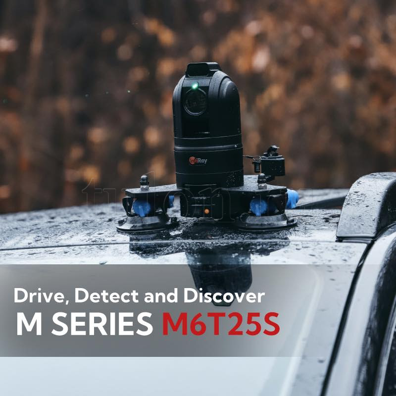 Тепловизионная поворотная камера iRay M6T-25S с лазерным дальномером. Больше возможностей с тепловизионной камерой: купольная тепловизионная камера iRay M6T-25S, предназначенная для установки на транспортных средствах. Благодаря разрешению 640x512, встроенному масштабированию, лазерной указке и расширенным функциям искусственного интеллекта для автоматического отслеживания животных iRay M6T-25S хорошо работает даже в самых требовательных условиях. Он питается от автомобильного прикуривателя и оснащен сменным аккумулятором и рассчитан на длительную надежность.